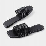 Iva Sandalias Planas de Malla con Brillos y Punta Cuadrada