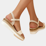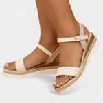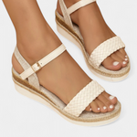 Damiana Sandalias de Cuña en Color Crema con Detalle Trenzado