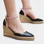 • Tiras de yute al tobillo con cierre ajustable para un ajuste seguro