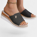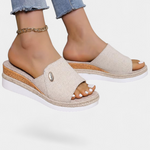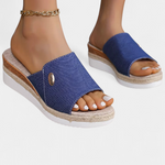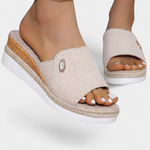 • Cuña forrada de yute y suela de goma ligera para pasos cómodos