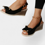 Diseñadas para ofrecer estilo elevado sin renunciar al confort. Las sandalias Beatriz combinan una silueta femenina con detalles encantadores, como el lazo en la parte superior y una correa con hebilla que asegura un ajuste perfecto. La plataforma aporta altura con estabilidad, ideal para días largos bajo el sol.