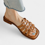Diseño atemporal que irradia elegancia natural. Las sandalias Roma combinan sofisticación y frescura en cada paso, gracias a su estructura plana y el trenzado hecho a mano en el empeine.