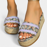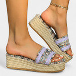 Dorotea Sandalias Planas con Doble Correa y Suela Trenzada Étnica