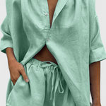 Anika Conjunto de Dos Piezas con Camisa de Botones y Pantalones Cortos con Cuerda