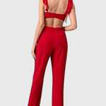 Causa una impresión audaz y elegante con Chantal—un mono sin mangas diseñado para definir y favorecer. Con su cintura alta, piernas anchas y un detalle de corte llamativo, este look combina el encanto femenino con un toque de confianza. Terminado con un delicado volante, es tu opción ideal para soirées en clima cálido y noches destacadas.