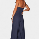 • Escote limpio sin mangas que destaca hombros con elegancia