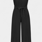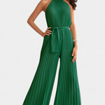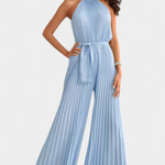 Minimalismo elegante con un toque arquitectónico. El mono Patrizia combina líneas limpias con plisados fluidos que caen con gracia, mientras el cuello halter añade un aire sofisticado y atemporal para eventos donde el estilo habla por sí solo.